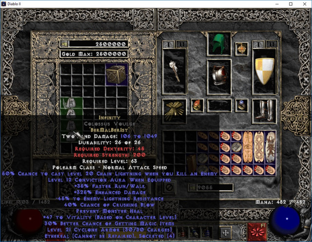 And together with the Sur i found a day or two before Mfo i had all runes for infi, sadly i didnt hav any eth elite base for it, somewhen i got a 4 sox CV which was fine for me and it turned into a max ed (325%)infi which is very nice. So merc has cool runewords now, perf roll on low ebugged dusk (max life/res) and max ed infi cv.