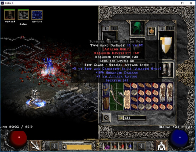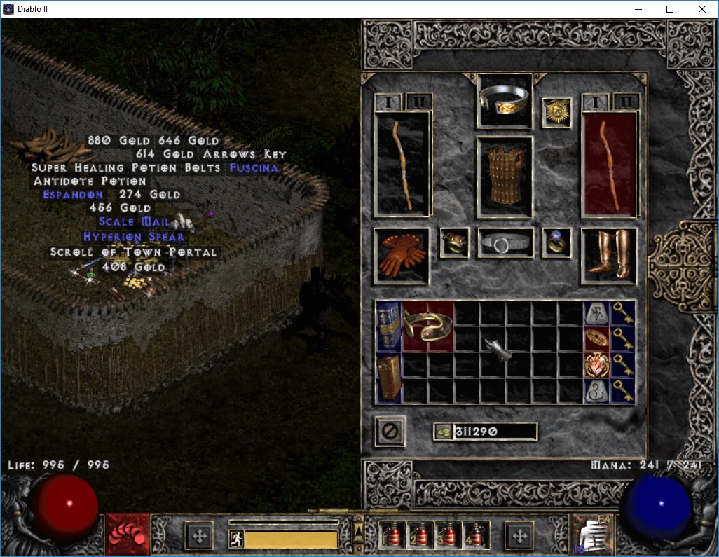 Drops: Leorics, rising sun, magefists, marrowwalks +2, Gulli, draculs, to gloves, CoT, ormus +3 fb, lidless, hone sundan, tal mask, gheed 29%, wizzy, raven 18dex, aldur boots, kiras 68, made spirit 30 monarc, eth 5 sox cs, gores, Wisp protector, reapers, dungo, tarnhelm, waterwalk 63l, ormus meteor, Homunculus, viper 34/11, gaze 8ll 19% 14 magdamred, 5/5 cold rbf, WTs 44 mf, gladiators bane, string, ormus frost nova, Gul, viper 24, Psn rbf 3/5, Viper 27, duriels eth, Tal amu, Mosars, Zaka, SC 17l 7 coldres.