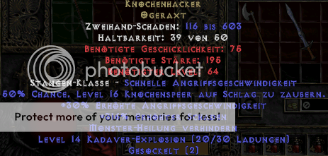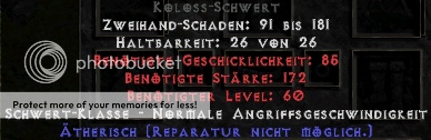 2. Items: Berserker-Axt (5 Sockel), Cold- und Nec Summoner-Skiller ("clean" denke, Life-adds konnte ich mir noch nie leisten ^^, wobei wir beim Nec gerne verhandeln können), Homunkulus, Arach, eth Hone Sundan, Irrlichtprojektor, Thundergods, Leorics. TBC