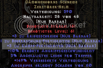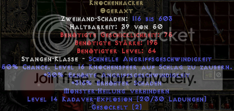 2. Items: Berserker-Axt (5 Sockel), Cold- und Nec Summoner-Skiller ("clean" denke, Life-adds konnte ich mir noch nie leisten ^^, wobei wir beim Nec gerne verhandeln können), Homunkulus, Arach, eth Hone Sundan, Irrlichtprojektor, Thundergods, Leorics. TBC